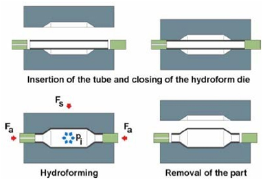 內高壓成形正是適應這樣的要求而提出來的一種新工藝,內高壓成形件具有重量輕、剛度好、零件數量少、可減少后續機械加工和組裝焊接量等優點,因此可以減少模具,降低生產成本,縮短加工周期。可以用于制造汽車、航空、航天等行業中使用的各類輕體構件。