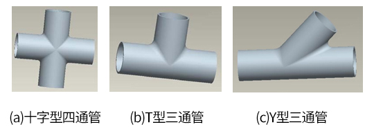 枝杈管件一般可按形狀分為十字型四通管、直三通管(T 形管)、斜三通管(Y 形管)等三類,各種管件的形狀如圖 1-5。