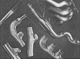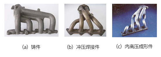 目前國內外生產排氣岐管的方法主要有整體鑄造成形、沖壓組焊成形、內高壓成形出枝杈管然后跟管件連接成形。各種工藝成形的排氣管件如圖 1-9。