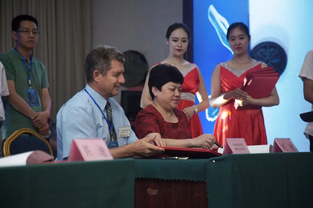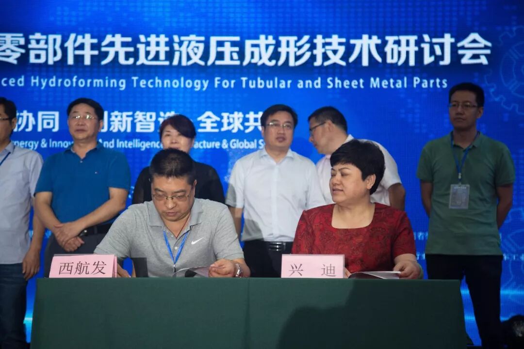 河南興迪鍛壓設備制造有限公司歐陽翎董事長分別與西安航天發動機廠(由坤輝機電公司王雪暉總經理代理)、白俄羅斯科學物理技術研究所Artur教授簽署戰略合作協議。