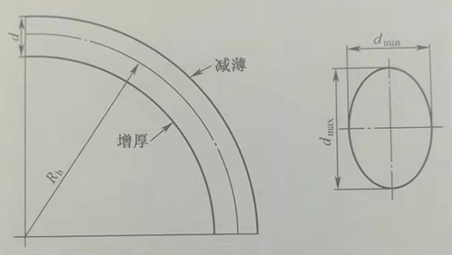 當Rb/d過小時,彎曲中性層的外側管壁會產生過度變薄,甚至導致破裂;最內側管壁將增厚,甚至失穩起皺,t/d越小,起皺趨勢越嚴重。隨著Rb/d變小,變形程度增加,截面畸變(不圓度)也愈加嚴重。