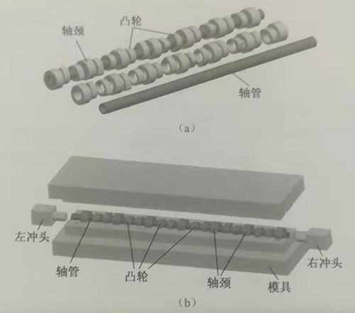 (a)組合式凸輪軸結(jié)構(gòu)圖;(b)液力脹接模具結(jié)構(gòu)。