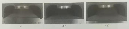由于沖頭形狀改變了翻邊孔材料流動形式,不同形狀沖頭翻邊孔質量不同。圖7-39為不同沖頭形狀時的翻邊孔剖面照片,工藝條件分別為內壓80MPa,孔徑20mm,翻邊系數0.6。