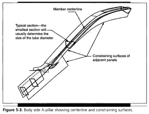 圖5-3顯示了稱為“車身側車頂軌內”的車身結構的中心線和約束表面(Bruggemann?1997)。