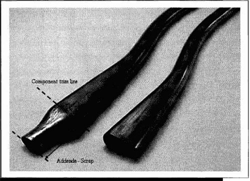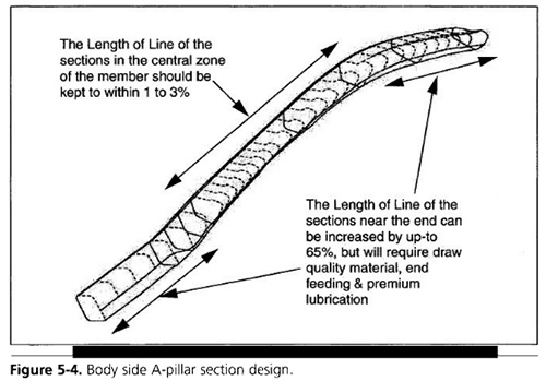 減少量取決于彎曲的嚴重程度、彎曲工具的精度和芯軸直徑,材料在該區域也會硬化,因此在端部附近的成形性降低,截面周長可以增加65%,如圖5-5所示。