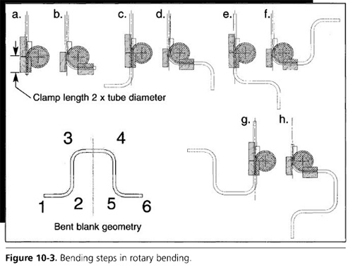 如圖10-3(a至h)所示,被彎曲的管子在彎曲循環(huán)期間被操作時(shí)覆蓋了一個(gè)大的外殼,確保折彎?rùn)C(jī)周圍有足夠的間隙是很重要的。