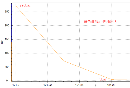 急停工況是按下面板上的急停按鈕,發動機瞬間熄火,測出的馬達進口壓力和出口壓力。