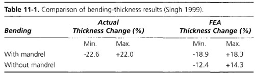 從表11-1可以看出,預測的FEA厚度變化與實際測量值比較好。