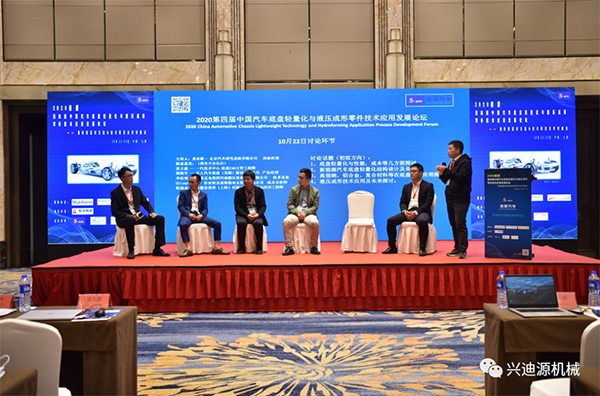 此外,在本次論壇圓桌討論環節中,我司李經明副總與行業嘉賓就液壓成形技術、汽車輕量化技術等方面展開對話交流,為推動汽車底盤輕量化的發展建言。