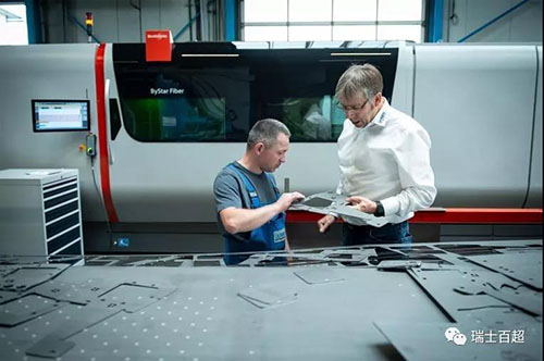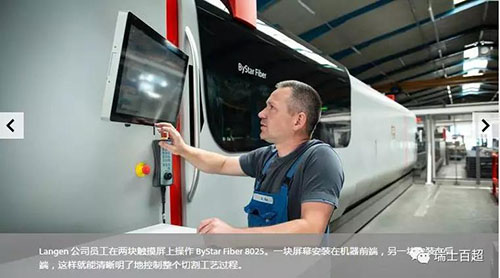 Franz?Langen?(右側)?在與ByStar?Fiber?8025的機床操作員交流。切割面的質量對工件的后續加工非常關鍵。好的激光切割意味著不需要繁瑣的返工