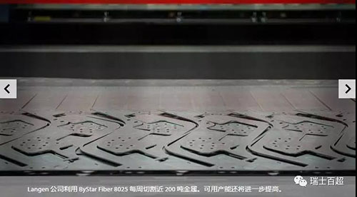 深色玻璃后方閃爍著綠色光線,一個激光切割頭正在前后左右移動。它精確靈巧地運動著,從一塊金屬板材上切割出輪廓。從二月份起,這臺ByStar?Fiber?8025就開始在公司服役。“我們想要一臺切割效率高并且能夠加工大尺寸板材的機器。我們要加工的金屬工件長度最大有8米,所以也希望能夠切割這個尺寸的工件”,Langen?CNC?Metalltechnik的總經理Franz?Langen說。