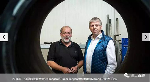 Bystronic百超北區銷售經理J?rg?Zechel?(左側)?說:“這個由激光切割系統、自動化系統、軟件和服務構成的整體解決方案是Bystronic百超與Langen?CNC?Metalltechnik通過密切的溝通交流實現的。這種整體套餐在市場上還從來沒有過。”