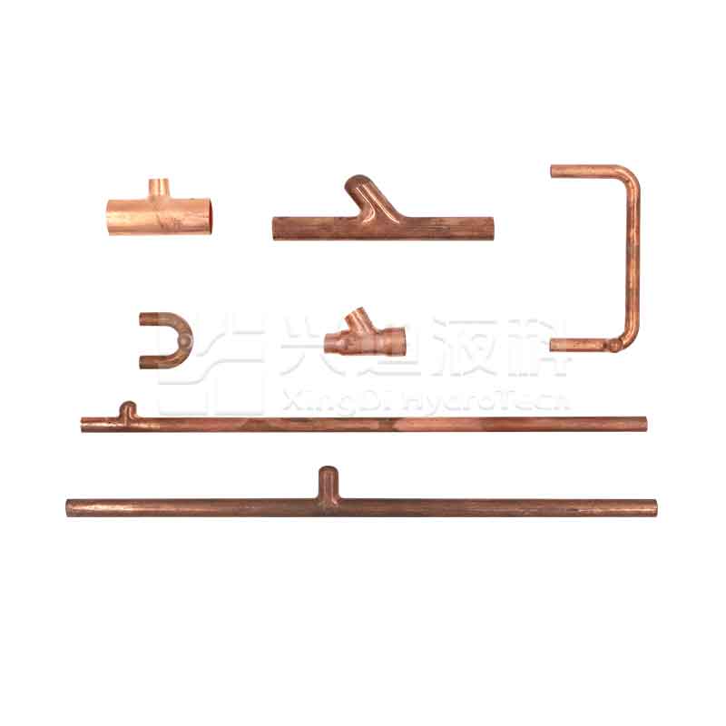 金屬接頭管件液壓成形設備特別適用于紫銅、青銅、不銹鋼、鋁合金、復合材料的三通管、四通管、T型管、Y型管、L型管的一次液壓脹形成形,采用液體介質液壓成形替代傳統膠脹、鉛脹、沖壓焊接成形,成形效率高、產品精度高、表面質量好。典型產品包括銅材和不銹鋼接頭等三通或多通典型零件、自行車配件。其中包括發動機三通管連接件、水路連接管件、制冷系統連接管件、廚衛管路系統轉換接頭等。